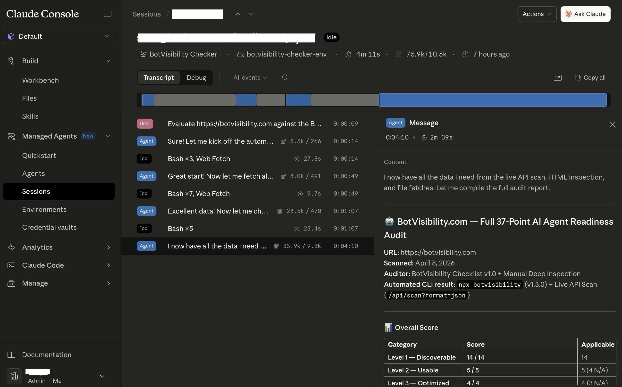 curl -fsSL https://api.anthropic.com/v1/agents \ -H "x-api-key: $ANTHROPIC_API_KEY" \ -H "anthropic-version: 2023-06-01" \ -H "anthropic-beta: managed-agents-2026-04-01" \ -H "content-type: application/json" \ -d @botvisibility-agent.json